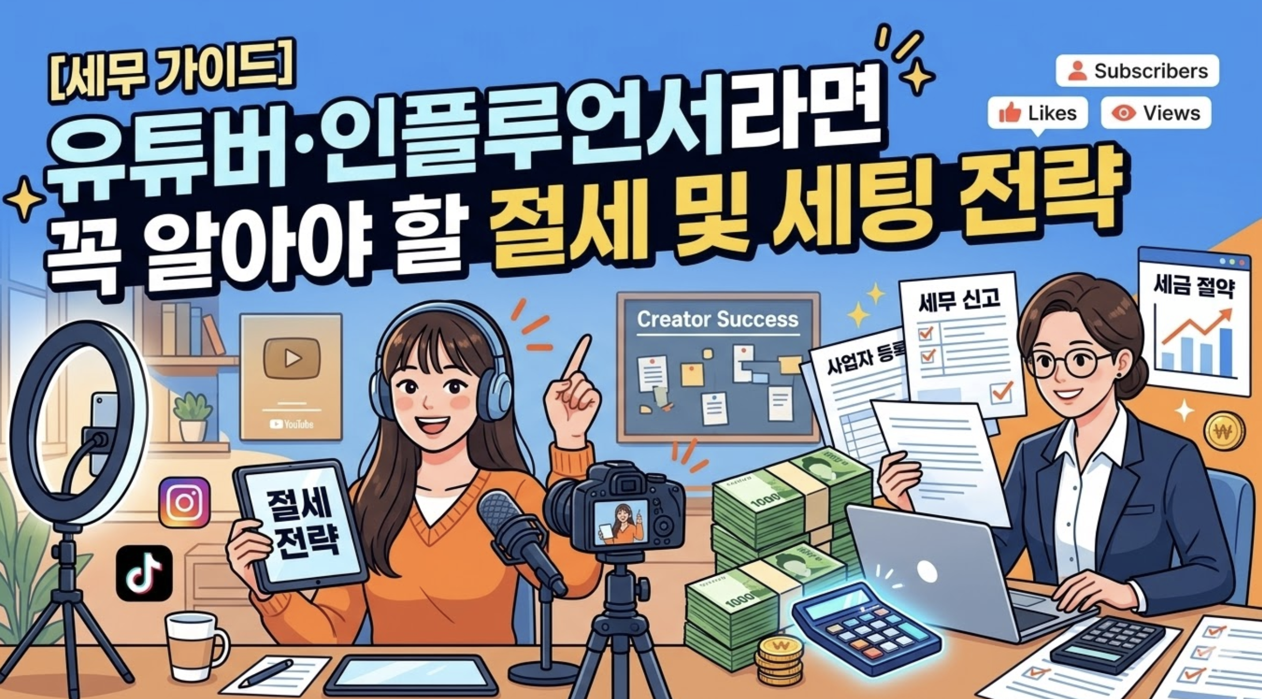 유튜브나 SNS로 수익이 발생하기 시작했다면 가장 먼저 고민해야 할 것이 바로 '세금'입니다. 국세청은 유튜버를 고소득자로 분류하여 주요 세무 조사 타겟으로 삼는 경우가 많으므로, 초기부터 안전하게 세팅하는 것이 중요합니다.